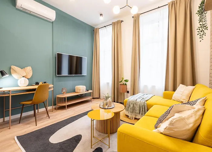 L'appartamento New Downtown Bliss - A Homelike Haven Budapest, situato a una distanza di 250 metri dai Cortili Gozsdu e British Council Hungary, vanta una vista sul giardino.